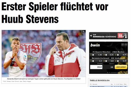 „Huub Stevens (61 de ani) are doar două meciuri la cârma lui Stuttgart, dar i-a fost suficient pentru a-și creiona strategia pentru partea a doua a sezonului. Primul jucător care va părăsi gruparea în iarnă este Alexandru Maxim. Tacklinguri, disciplină tactică, și multă dăruire pe ambele faze. Aceasta este filosofia prezentată de Stevens pentru atingerea obiectivului – salvarea de la retrogradare -, iar românul nu se încadrează la niciunul dintre aceste capitole„, notează Bild.