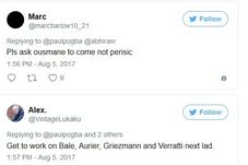 United plănuiește să mai transfere cel puțin un jucător important până la închiderea perioadei de transferuri, iar suporterii au început să-l „bombardeze” pe Pogba cu mesaje prin care îi cereau să convingă jucători precum Gareth Bale (Real Madrid), Antoine Griezmann (Atletico Madrid) și Ousmane Dembele (Dortmund) – ambii colegi cu Pogba în naționala Franței – să i se alăture la United.