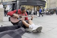 Fotbalistul milionar a făcut o avere pe teren, dar în prezent își ia chitara şi cântă pe străzile orașului în care a devenit faimos din plăcere.