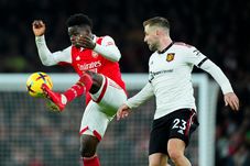 Arsenal a reușit egalerea 7 minute mai târziu prin Eddie Nketiah, care a trimis mingea între buturile porții apărate de David De Gea cu o lovitură de cap, după o centrare ideală a lui Granit Xhaka, stabilind și scorul pauzei.