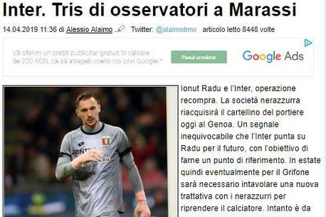 Totuși, cele mai mari șanse de a-l avea pe Radu le are Inter, fostul său club, care are o clauză de răscumpărare în contractul cu Genoa. Presa din Italia a scris că formația nerazzurra intenționează să o active și să achite 10 milioane de euro pentru a-l readuce pe portarul român pe „Giuseppe Meazza”. Întoarcerea lui Radu la Inter s-ar putea produce în 2020, conform presei din „Cizmă”, românul urmând să petreacă și sezonul viitor sub formă de împrumut la Genoa.
