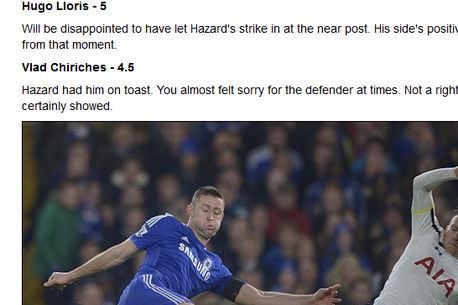 Presa din Anglia critică întreaga linie de fund a celor de la Tottenham, care la primul gol marcat de Hazard după o combinație cu Drogba, moment în care pe „Aaron Lennon și Vlad Chiricheș i-a furat somnul”.