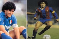 Maradona în tricoul lui Napoli (stânga) și al Barcelonei, două dintre cele mai importante echipe de club pentru care a evoluat argentinianul.