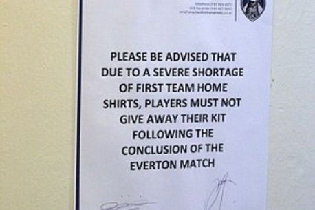 „Vă rugăm să rețineți că există o adevărată criză de tricouri la prima echipă, iar jucătorii nu trebuie să renunțe la echipament la finalul meciului”, este anunțul postat de conducere pe ușa vestiarului.