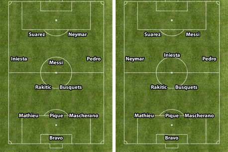În noua așezare, Luis Enrique mizează în primul rând pe versatilitatea lui Mathieu, care poate juca atât fundaș central, cât și fundaș stânga. În plus, în linia de doi mijlocași din fața apărătorilor poate apărea Rakitic, lângă Busquets. Pe fază ofensivă, lucrurile pot suferi modificări. Prima ipoteză ar fi folosirea lui Pedro, Neymar și Iniesta în spatele lui Messi și Suarez, în timp ce a doua variantă ar fi cu Neymar și Suarez vârfuri împinse și cu Messi în rol de coordonator de joc. „Decizia lui Luis Enrique are caracter ofensiv. Va încerca să ducă mai mulți jucători în jumătatea și chiar în treimea adversă pentru a facilita poziții de joc suplimentare. Tranziția negativă va fi mai accentuată. Mai exact, Barcelona va rămâne în pressing când va pierde mingea. În plus, o construcție din spate cu trei jucători, executată în mod corect, poate fi mai greu de blocat”, este părerea lui Edi Iordănescu.