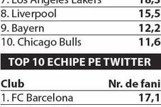 Faptul că fotbalul este cel mai răspândit sport al planetei reiese și dintr-un top 10 al celor mai populare pagini de Facebook ale cluburilor. În această ierarhie reușesc să intre doar două formații din extra-fotbal: Los Angeles Lakers, cu 18,3 milioane de fani, și Chicago Bulls, cu 11,6 milioane de fani. Pe Twitter, echipele din extra-fotbal reulșesc să câștige încă un loc în topul celor mai populare 10 conturi. Los Angeles Lakers prinde podiumul în această categorie, cu 3,6 milioane de „followers”, și alături de ea vin Miami Heat (2,2 milioane) și Boston Celtics (1,3 milioane).