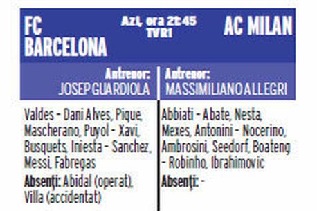 După 0-0 în prima manșă, Barcelona a reușit calificarea în semifinalele Ligii Campionilor, în urma victoriei cu 3-1 reușite în returul cu AC Milan, pe teren propriu. Două penaltyuri transformate de Messi (24 de ani) au asigurat cea a cincea calificare consecutivă a catalanilor în „careul de ași”. Argentinianul a egalat aseară recordul de goluri reușite de un singur jucător într-un sezon european, 14.