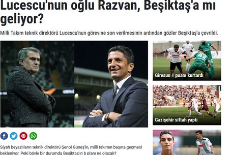 Mircea Lucescu e și el pe lista lui Beșiktaș. Fiul său, Răzvan e și el pe lista lui Beșiktaș. Lucescu jr. e pe primul nume de pe lista lui Beșiktaș și nu e prima oară când turcii înaintează o asemenea variantă. S-a vorbit despre interesul lui Beșiktaș pentru Răzvan Lucescu în 2011, după plecarea lui Bernd Schuster și după ce Mircea Lucescu a spus „pas”.