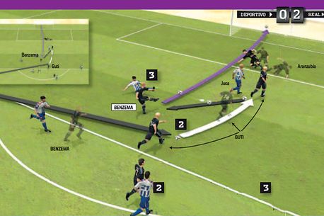 Guti, care la golul doi i-a pasat cu călcâiul lui Benzema.