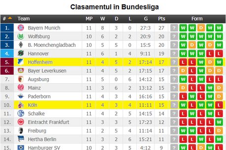 Jucătorii, managerul, staff-ul dar mai ales suporterii lui Koln au avut parte de un meci de neuitat în etapa a 11-a din Bundesliga. După ce și-au văzut echipa condusă încă din primele momente ale confruntării cu Hoffenheim, iar apoi egalată după ce a avut un avantaj de două goluri, fanii clubului din vestul Germaniei au jubilat la final, echipa lor reușind să câștige partida în ultimele minute. Însă merită relatat modul în care a evoluat scorul pe parcursul meciului, rezultatul final afișat de tabela de scor a arenei Rhein-Neckar fiind 4-3.