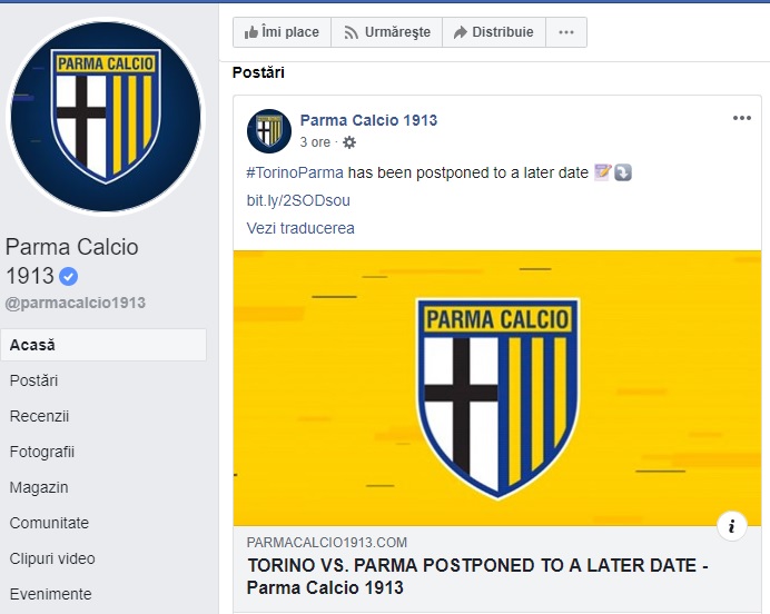 Parmegianii au fost luați prin surprindere de amânarea meciului. Site-ul oficial al Parmei a anunțat în ultima clipă postdatarea meciului, asta după ce mai multe postări invitau la meci.