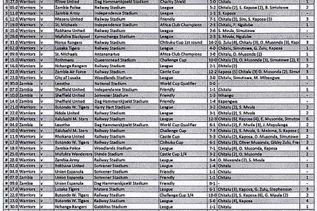 Chitalu a marcat 97 de goluri pentru Warriors, 4 goluri pentru echipa națională, 3 pentru Midlands și două într-un amical „All Star”.