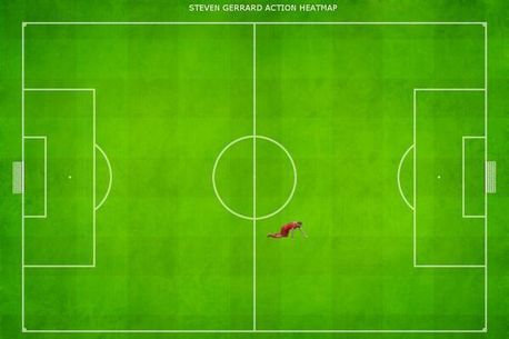 Zona de acțiune a lui Steven Gerrard în meciul cu Chelsea. Mijlocașul Liverpool nu a fost foarte ocupat