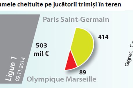 Ligue 1 (Franța) – 503 de milioane de euro (PSG 414 de milioane vs. OM 89 de milioane 2-0)