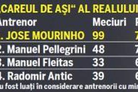 Jose Mourinho se află în fața celui de-al 100-lea său meci pe banca lui Real Madrid. Evenimentul va avea loc astăzi, pe arena „Benito Villamarin” din Sevilla, într-o partidă care poate reprezenta un nou pas uriaș al „galacticilor” spre titlu. În cele 99 de meciuri în care i-a pregătit pe madrileni, Mourinho a reușit 76 de victorii, 13 remize și a pierdut doar 10% din totalul jocurilor: 10 înfrângeri. În mai puțin de doi ani, el a dus Realulul la un golaveraj de aproape +200: echipa blanco a punctat de 271 de ori, primind în schimb doar 79 de goluri.