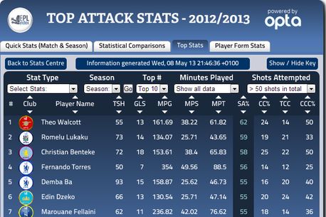Tânărul Lukaku este însă o prezență constantă în ultima vreme în topurile eficacității atacanților din Premier League. Pentru WBA, Lukaku a înscris 14 goluri în 33 de meciuri, doar în 14 din acestea fiind și titular. Lukaku este doar al doilea în clasamentul procentajului șuturilor care au nimerit spațiul porții (59%), cu 3% în spatele lui Theo Walcott. Belgianu a marcat astfel un gol la 134 de minute, ocupând poziția a patra într-un top condus de Robin van Persie, care a înscris la fiecare 117 minute de joc.
