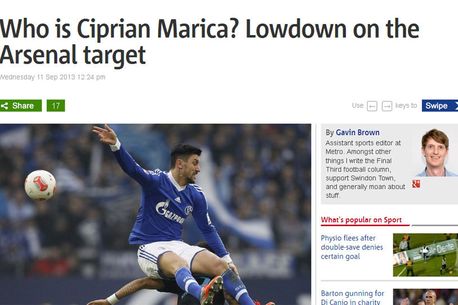 Jurnaliștii de la Metro îl prezintă pe internaționalul român drept un jucător „pe gustul lui Arsene Wenger” și trec în revistă întreaga carieră a vârfului de atac.