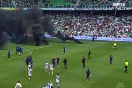 După câteva minute de pauză, arbitrul a decis ca jocul se se reia. Însă, suporterii echipei gazdă și-au continuat protestul și au aruncat din nou cu o mulțime de grenade fumigene pe gazon. În acel moment, arbitrul Jeroen Manschot a decis suspendarea jocului și i-a trimis pe fotbaliștii din cele două tabere la vestiare.
