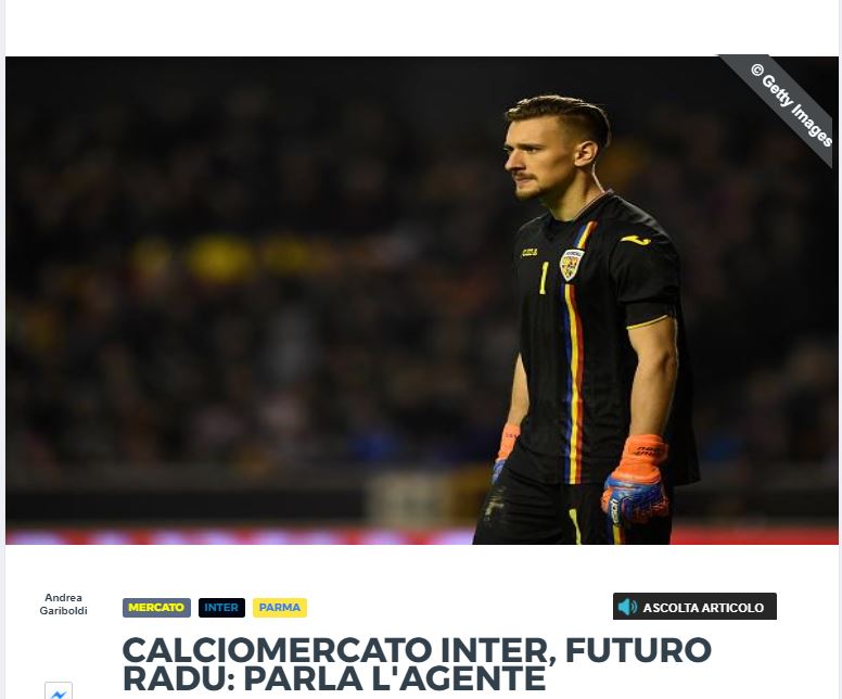 Ionuț Radu aparține de Inter Milano, iar milanezii intenționează să îi pregătească un loc lângă Samir Handanovic, cu perspectiva de a deveni titularul postului.