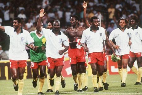 Roger Milla, 38 de ani pe atunci, a avut un aport consistent la calificarea Camerunului până în sferturile de finală ale Campionatului Mondial din Italia, 2-3 cu Anglia lui Gary Lineker, marcând în total patru goluri. În grupe, reprezentativa africană a învins pe Sant Nicola din Bari naționala României, scor 2-1, dublă Roger Milla, respectiv Balint.