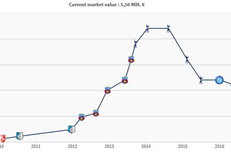 Acum, Vlad Chiricheș e cotat de Transfermarkt.de la 5,5 milioane de euro, cu 6,5 milioane mai puțin decât nivelul maxim atins în 2014, când încă juca la Tottenham (11 milioane de euro).