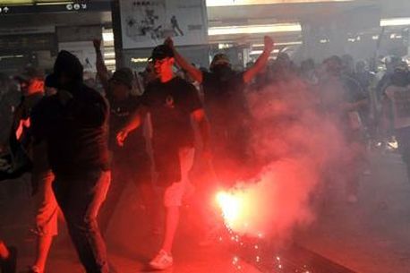 Derby-ul capitolin a început, cum altfel, pe străzile de lângă Olimpico. Suporterii giallorossi au ieșit șifonați din confruntarea cu ultrașii lui Lazio: doi fani au fost înjunghiați înaintea meciului. În teren, tribunele au luat foc ca întotdeauna. Totti spera să mai echilibreze palmaresul în fața marii rivale, acolo unde are mai multe înfrângeri decât victorii.