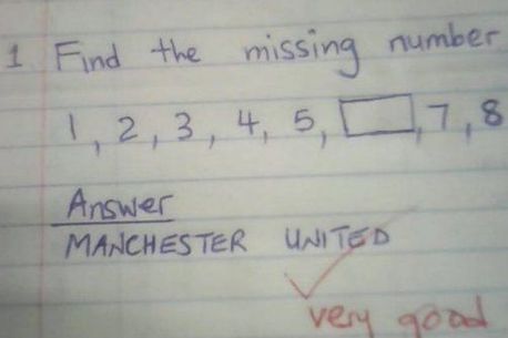 Evident răspunsul corect era 6, însă puștiul – cu siguranță an al fotbalului din Premier League – a oferit un răspuns prin care a reușit să-și distreze și profesorul, care i-a acordat punctele pentru răspunsul corect.