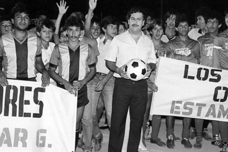 Îndrăgostit de fotbal. Pablo Escobar (foto, alături de jucătorii de la Atletico Nacional) a făcut o pasiune pentru sportul rege, iar unii dintre banii obținuți din traficul de droguri au mers în construirea terenurilor pe care tinerii fotbaliști columbieni să poată juca fotbal.