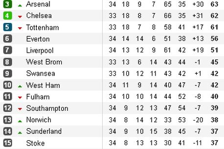 Etapa 34 a început bine pentru Arsenal, care s-a impus la limită în deplasarea de la Fulham, cu 1-0, grație golului marcat de fundașul central Per Mertesacker. Din păcate, „tunarii” nu îl vor putea folosi pe Olivier Giroud etapa viitoare, contra lui United, francezul fiind eliminat în ultimul minut. Și gazdele au terminat partida în  „10”, Sidwell părăsind terenul după numai 12 minute de joc.