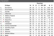 Etapa a 28-a a Primerei Division nu a adus nicio schimbare la vârf. Primele patru clasate, Barcelona, Real Madrid, Sevilla și Villarreal, au obținut victorii facile și și-au consolidat astfel pozițiile deținute și până acum.
