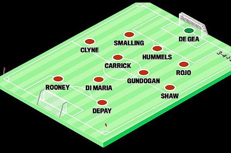Manchester United 2015-2016: De Gea – Smalling, Hummels, Rojo – Clyne, Carrick, Gundogan, Shaw – Di Maria – Rooney, Depay