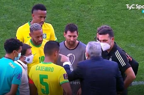 Partida dintre Brazilia și Argentina a fost programată duminică seara, la Sao Paolo, însă a fost suspendată după doar cinci minute.