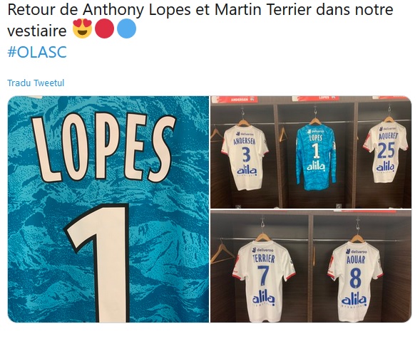 O imagine din vestiarul lui Lyon a declanșat bucuria suporterilor, care îl vor înapoi pe Lopes. Tricoul lui Tătărușanu lipsește din vestiar, semn că românul nu a fost inclus în prima echipă pentru meciul cu Amiens. „Slavă Domnului! Tătărușanu este cu adevărat slab”, scrie unul dintre fani pe twitter.