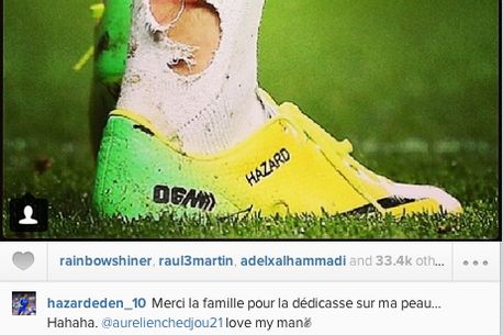 Unul dintre cei mai importanți jucători ai englezilor, Eden Hazard, a postat pe contul personal de Instragram o poză cu glezna sa dreaptă însângerată și cu ciorapul rupt, subliniind astfel tratamentul violent la care a fost supus.