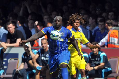 Atracția meciului a fost, însă, atacantul Adebayo Akinfewa. Fotbalistul în vârstă de 32 de ani, cunoscut în lume pentru masa musculară neobișnuit de dezvoltată pentru un fotbalist, i-a hărțuit pe apărătorii lui Chelsea, iar instantaneele surprinse de fotografii prezenți la meci sunt sugestive în acest sens.