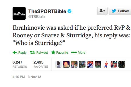Răspunsul i-a lăsat mască pe toți cei prezenți în sală: „Cine e Sturridge?”, suedezul având chiar și mimica unui om mirat.