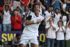 Michu, celebrând golul marcat cu Petrolul. A fost una dintre ultimele sclipiri ale spaniolului în tricoul galezilor din Premier League