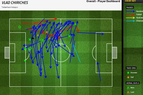 În ceea ce privește cifrele, Chiricheș stă destul de bine. A greșit doar șase pase în acest meci (53/59), pentru un procentaj de 90%. 23 dintre ele au venit însă între român și Rose, fundașul stânga al lui Tottenham. Totodată, Chiri a reușit un dribling, 2 din cele 3 tacklinguri încercate, pierzând doar două din cele șase dueluri aeriene pe care le-a avut cu adversarii. Având în vedere că Vertonghen sau Kaboul ar putea rata și meciul de duminică cu Stoke, fiind incerți, Chiricheș are șanse mari să rămână titular.