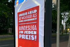 Duminică, înainte de Meciul Koln – Mainz, pe stadionul ReheinEnergie, unii suporteri au amplasat, în exteriorul arenei, mai multe postere și o canapea pe care au scris „Stadioanele în locul canapelelor! Suntem împotriva meciurilor fantomă”. Posterele arătau și ele mesaje împotriva meciurilor din campionatului Germaniei: „Banii noștri sunt mai importanți decât sănătatea voastră”. Suporterii nemulțumiți au vrut să sublinieze astfel că decizia de a reporni fotbalul a fost luată din considerente financiare.
