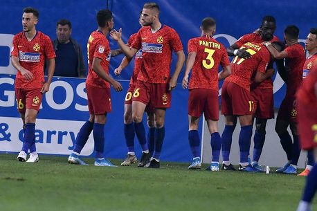 Juvhel Tsoumou, de la FCSB, lupta pentru balon, in timpul meciului de fotbal contra echipei CFR Cluj din etapa a X-a a Ligii 1, disputat pe Arena Nationala din Bucuresti, duminica, 22 septembrie 2019. ALEXANDRU DOBRE / MEDIAFAX FOTO