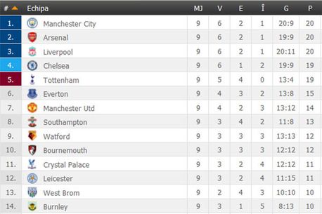 CLASAMENT PREMIER LEAGUE – ETAPA 9