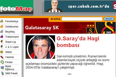 „Galatasaray a gasit antrenorul pentru noul sezon: Gheorghe Hagi. Conducerea galben-rosie i-a facut o oferta tehnicianului roman, care a mai antrenat pe Cimbom in perioada 2004-2005, când a cucerit Cupa Turciei.