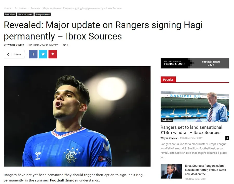 „Rangers încă nu a fost convins dacă să acționeze în cazul transferului lui Ianis Hagi”. Astfel își încep materialul cei de la Footbal Insider, articol dedicat situației lui Ianis Hagi.