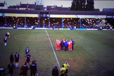 Condusă cu 1-0 de Southend și dominată clar, Millwall a fost „salvată” de o pauză neașteptată, provocată de căderea instalației de nocturnă a stadionului lui Southend în minutul 30! Însă suporterii „leilor” au găsit imediat soluția pentru ca meciul să fie reluat. Au pornit lanternele telefoanelor mobile și au creat o imagine remarcabilă, care va rămâne cu siguranță în memoria fotbalului englez.