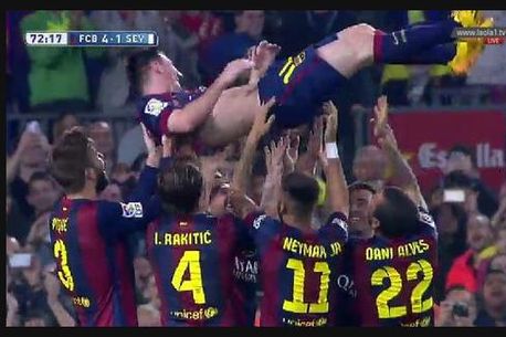 Messi a reușit în sfârșit să depășseacă recordul lui Telmo Zarra. Argentinianul Barcelonei a înscris de trei ori în meciul cu Sevilla (min. 21, min. 72, min. 78) și a strâns astfel 253 de goluri marcate în campionatul Spaniei. Messi a înscris în total 253 de goluri în cele 289 de partide jucate în campionat.