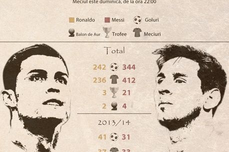 Lupta dintre Cristiano Ronaldo și Lionel Messi este mai aprigă ca oricând. Argentinianul a pierdut deja la începutul anului lupta pentru Balonul de Aur, titlu ce i-a revenit atacantului lui Real Madrid. Totuși, golgheterul Barcelonei se simte foarte bine în meciurile decisive împotriva lui Real Madrid. Messi a înscris de 18 ori în 26 de El Clasico, la acest capitol fiind peste rivalul său, care a înscris doar de 12 ori, în 20 de partide.