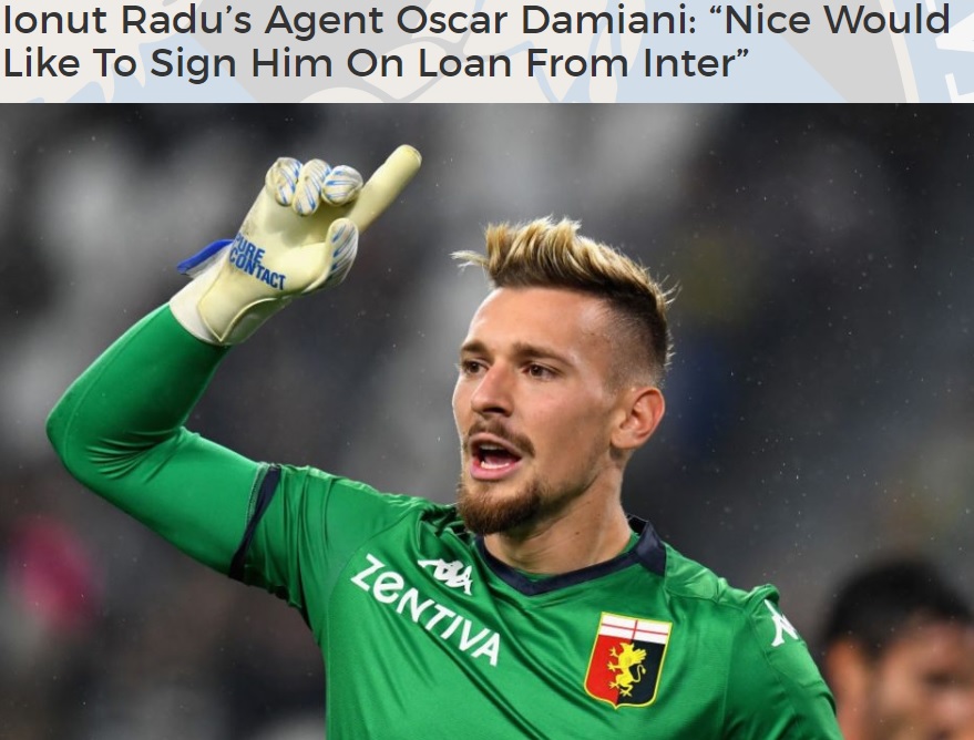 „Astăzi sunt la Nice și echipa franceză vrea să îl ia împumut de la Inter. Dar nu pentru șase luni, ci pentru un an și jumătate. Radu merită o echipă care să îl respecte și am găsit asta aici. Va veni aici”, a declarat Oscar Damiani la Radio Marte.