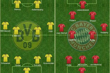 Borussia Dortmund: Langerak – Piszczek, Sokratis, Ginter, Schmelzer – Hofmann, Mkhitaryan, Kehl, Kirch – Immobile, Aubameyang