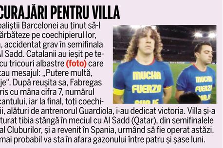 Finala așteptată de la CM al Cluburilor a avut și rezultatul așteptat. În afara lui Pele, care miza pe fosta sa echipă, „Barça e mai bună, dar va câștiga Santos”-, puțini credeau într-un alt deznodământ în duelul dintre campioana Europei și cea a Americii de Sud. Cu atât mai mult cu cât brazilienii nu știu, genetic, să facă faza defensivă. Iar când nu ai mingea (Barcelona a încheiat cu o posesie de 71%), e mai greu să ataci. La Yokohama, echipa „blaugrana” a tranșat finala încă din primele 45 de minute, cu reușitele lui Messi (17), Xavi (24) și Fabregas (45). „Prima repriză a fost excelentă. Am jucat ca niște mari artiști. Jucătorii mei au reușit să transpună pe teren ce și-au imaginat, iar rezultatul a demonstrat acest lucru. Messi a fost perfect”, a explicat ulterior Guardiola, la conferința de presă.