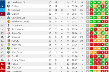 CLASAMENTUL PREMIER LEAGUE DUPĂ‚ 19 ETAPE